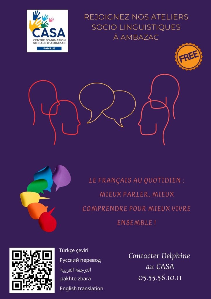 Depuis 2023, le Centre d’Animation Sociale Ambazac propose des ateliers sociolinguistiques pour aider les personnes primo-arrivantes ou dont le français n’est pas leur langue maternelle à devenir pleinement autonomes dans leur commune.